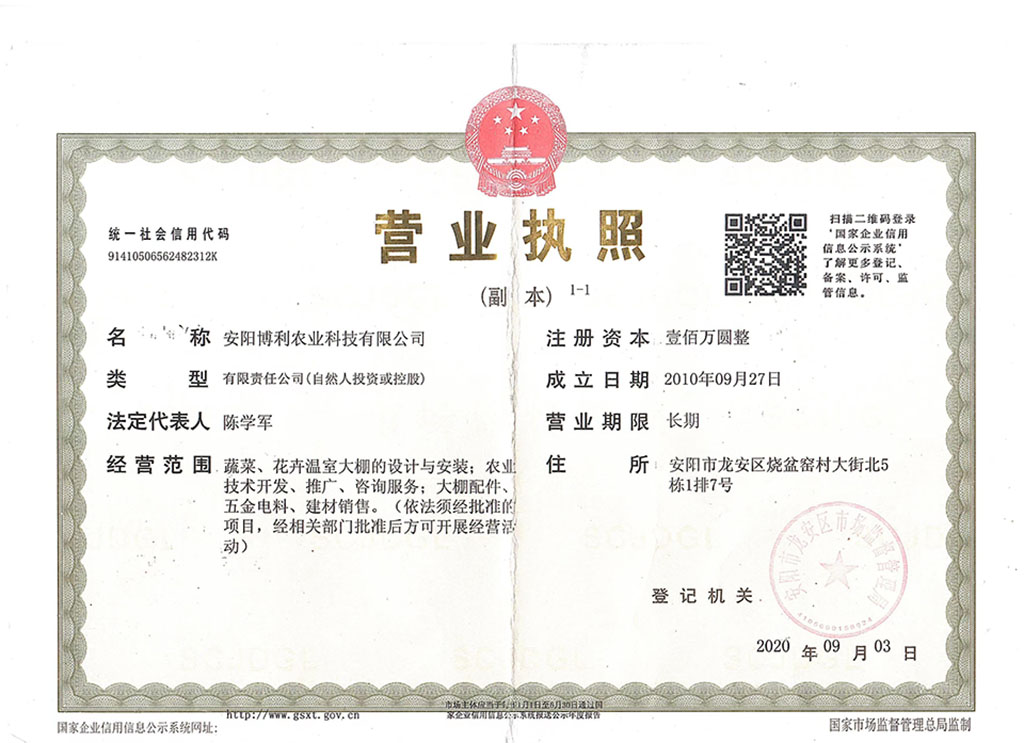 安陽博利農(nóng)業(yè)科技有限公司,是一家專業(yè)生產(chǎn)溫室大棚的現(xiàn)代化企業(yè)。公司擁有大棚材料生產(chǎn)線,各種加工折彎,縮頭等設(shè)備,及專業(yè)研發(fā)、技術(shù)人員,提供設(shè)計(jì)、制作、安裝及售后全程服務(wù)。公司在鍍塑鋼管大棚,幾字鋼、C型鋼溫室大棚,薄膜連體大棚,玻璃智能連棟大棚,反季節(jié)蔬菜溫室大棚,花卉大棚,育苗大棚,陽光板中空玻璃大棚,食用菌大棚,各種畜牧養(yǎng)殖大棚,特殊養(yǎng)殖大棚,生態(tài)觀光種殖大棚,生態(tài)農(nóng)業(yè)餐廳,等各種建造中,成績斐然。